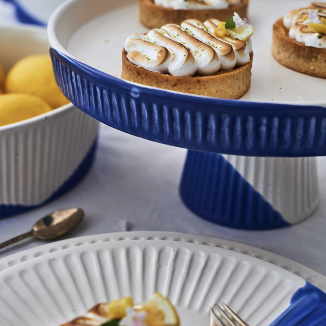 Tália, the collection that brings a piece of history to your home! The perfect cake stand doesn't exist....oh wait. Hand-painted ceramic cake stand with a touch of blue, that will make your cake POP. All "Pó de Barro" pieces are one-of-a-kind. Due to the artisanal production all products have variations in shapes, colors and finishes