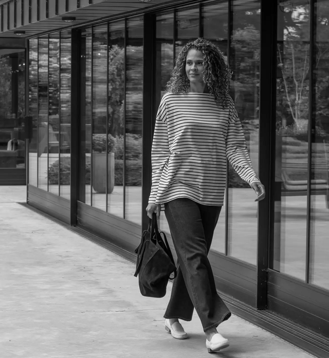 Bryony is a loose fitting long sleeve Breton style top. Its classic round neck, drop shoulder seams and side vents makes this top an easy wear.